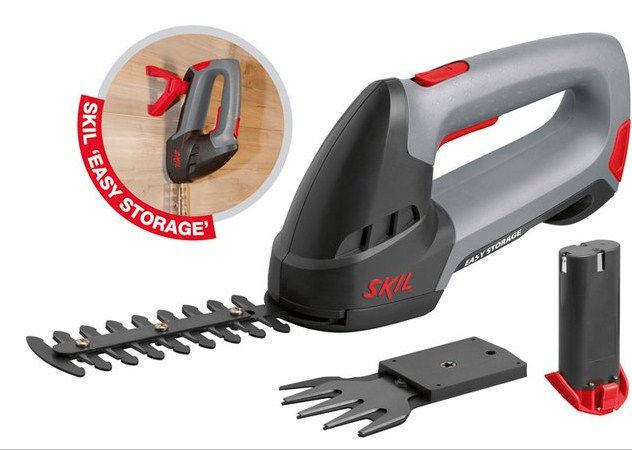 Skil-ekskluziv drška modela „EASY STORAGE“ (JEDNOSTAVNO ČUVANJE) za praktično kačenje alata na Skil vođicu za čuvanje koja se dostavlja. Uključeni modul „EASY STORAGE“ (JEDNOSTAVNO ČUVANJE) se može produžiti na praktični sistem za čuvanje sa vođicom za kačenje Vaših baštenskih Skil proizvoda. Moćni sistem zupčanika u 3 faze za sečenje/šišanje. Uključen drugi akumulator za neprekidni rad. Jednostavna „CLIC“ promena sečiva bez podmazivanja. Pakovanja akumulatora koja se menjaju. Velika sečiva makaza za grmlje i travu.Kompaktan i čvrst dizajn obezbeđuje optimalno držanje i štiti ruku. Ručka sa mekanim rukohvatom za dodatni komfor