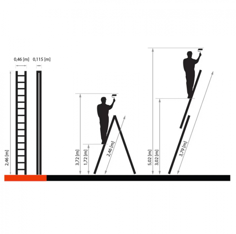 - Dužina sklopljenih merdevina: 2.46 m