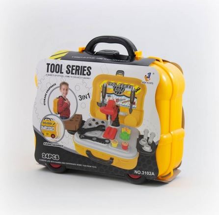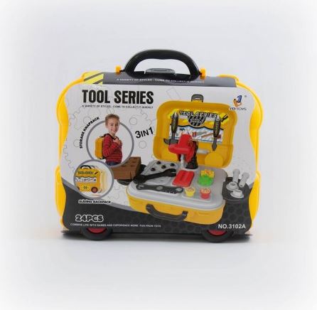 - Set sadrži: kofer/ranac/vozilo sa 24 dela alata: čekić, klešta, testera, presa, zavrtnji...