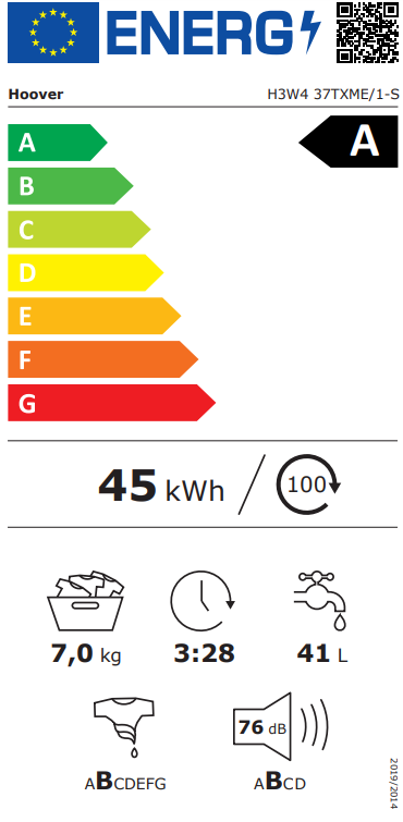- Programi Program za vunu, Brzi program 30', Program za osetljivu tkaninu, Eko program 40-60, Program za odeću za sport i rekreaciju, Program za pamuk, Mešovito 40°, DarkWash/Jeans, Higijenski/antialergijski program