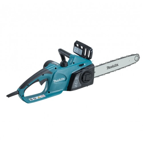 Ergonomski postavljena i iskošena prednja drška, povećava manevrisanje, što čini lakšim horizontalno sečenje. Metalna nazubljena letva čvrsto drži radni komad. Veliki prozor rezervoara za ulje, omogućuje rukovaocu lako da proveri nivo ulja. Prilagodljiva pumpa za ulje, isključuje se pri radu u praznom hodu. Bočni zategač lanca, za jednostavno zatezanje lanca. Automatska pumpa za ulje, za pouzdano podmazivanje lanca. Električna lančana testera Makita ima metalni šiljak za efektivnu silu okretanja. Zatezanje lanca bez korišćenja alata.
