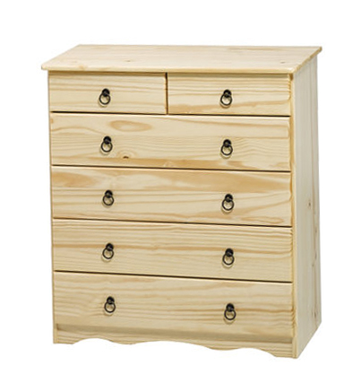 Kompaktna klasična komoda od lakirane borovine sa metalnim ručkama ima 4 fioke i 2 manje fioke. Vrlo laka i praktična za održavanje, ako se površina vremenom izgrebe i ošteti, upotrebite proizvode za održavanje lakiranog nameštaja.