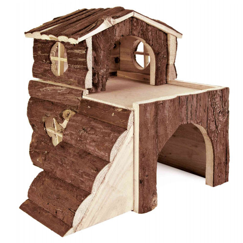 - Bjork kućica za glodare (činčila, morsko prase), od prirodnog drveta, na dva nivoa, sa rampom.