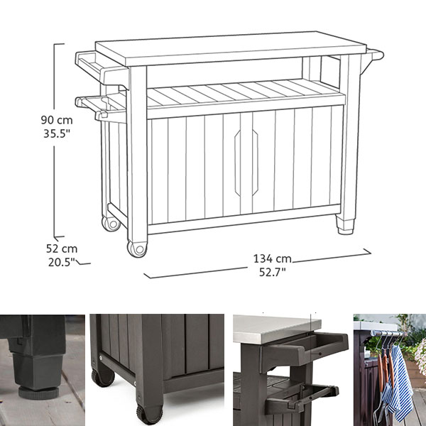 - Sve što vam je potrebno za nezaboravne gozbe i druženja na jednom mestu, baštenski mobilni sto za roštilj Unity 207 l grafit Keter će postati centar okupljanja i udobnosti za vas i vaše goste