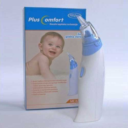 PLUS COMFORT nazalni aspirator brzo i nežno otklanja suvišni sekret iz nosa. Poseduje ergonomski dizajn i omogućuje komforniju i lakšu upotrebu aparata.Obezbeđuje neprestano uvlačenje koje nije moguće kod ručnih aspiratora.