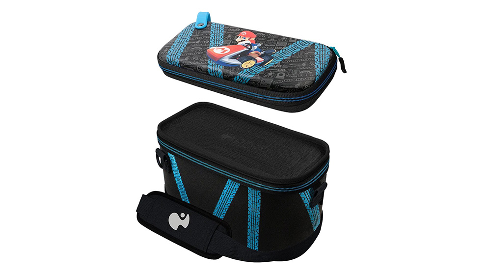 - Nintendo noćna torbica GLOW sadrži dve futrole u jednoj za čuvanje i zaštitu vaše igračke opreme dok putujete. Za osnovne stvari, gornja putna torbica se može spakovati, izvući i igrati pomoću ugrađenog postolja za uređaj. Donje kućište nudi dovoljno prostora za ceo sistem, a sa zamenljivim pregradama možete prilagoditi prostor tako da odgovara vašoj opremi kako god želite. Sjaj u pokretu sa jedinstvenim dizajnom ovog kućišta koji svetli u mraku koji će raditi nakon izlaganja svetlosti. Izdržljiva konstrukcija će zaštititi vaš hardver tokom putovanja, dok uklonjivi podstavljeni kaiš za rame čini ga lakim i udobnim za nošenje.