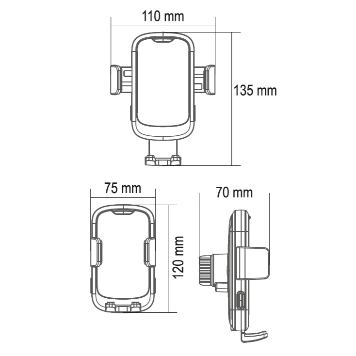 - Dimenzije 75/110 x 120/135 x 70 mm