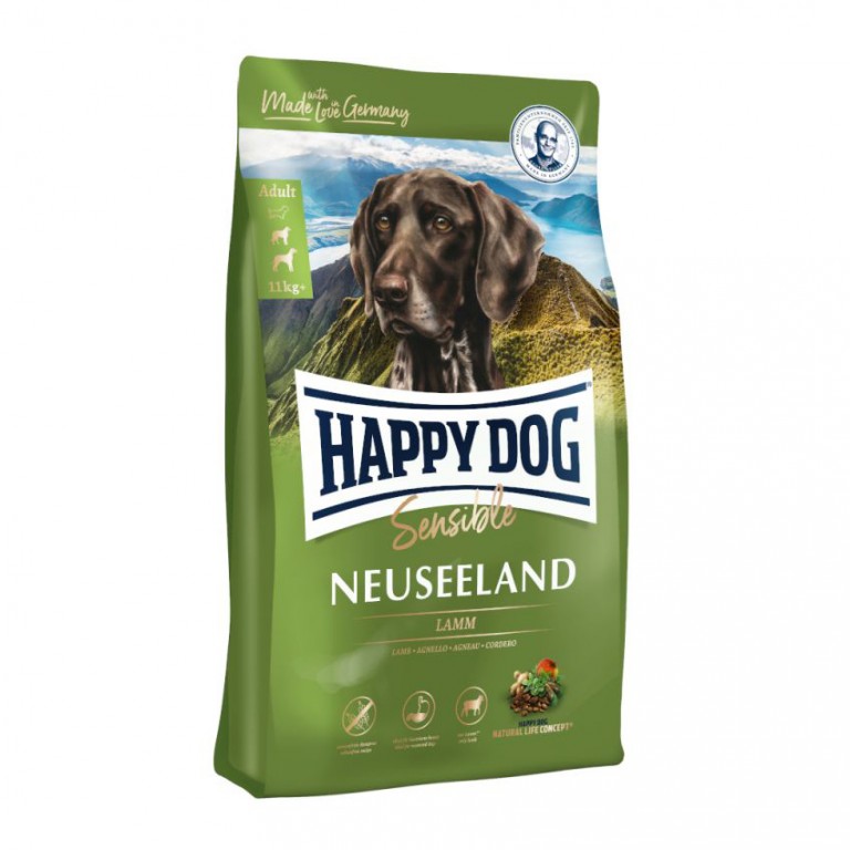 - Happy Dog Supreme Sensible Neuseeland je izvrsna opcija za pse s osetljivim probavnim sistemom ili alergijama, zahvaljujući svom pažljivo odabranom sastavu i visokokvalitetnim sastojcima. Njegova formula podržava zdravlje zglobova, kožu i krzno, te je pogodna za pse svih veličina i aktivnosti