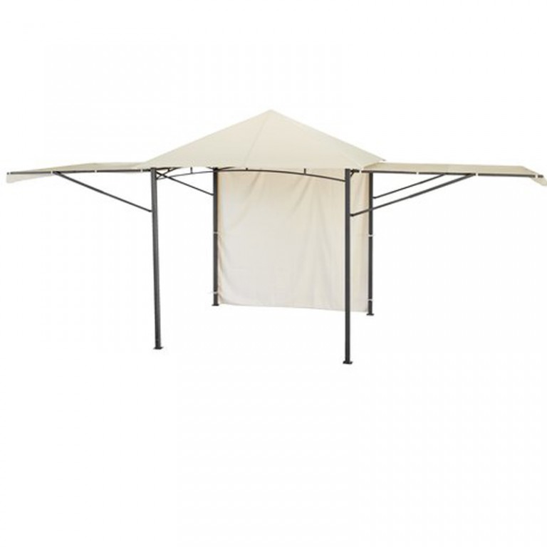 Izuzetno praktičan paviljon za dvorište sa bočnim stranicama koje se mogu podići i poslužiti kao tenda. Ram je čelični a platno od poliestera.