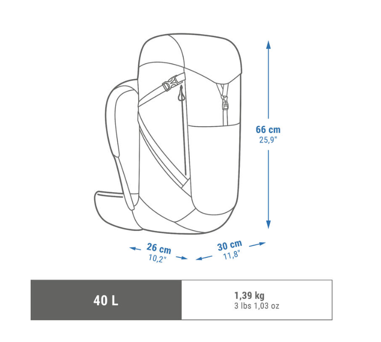 • 40 l. Dimenzije: 66 cm x 30 cm x 26 cm. Pogodan za lični prtljag.