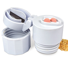 - Sadrži sekač, drobilicu, odeljak za čuvanje leka, posudu za vodu