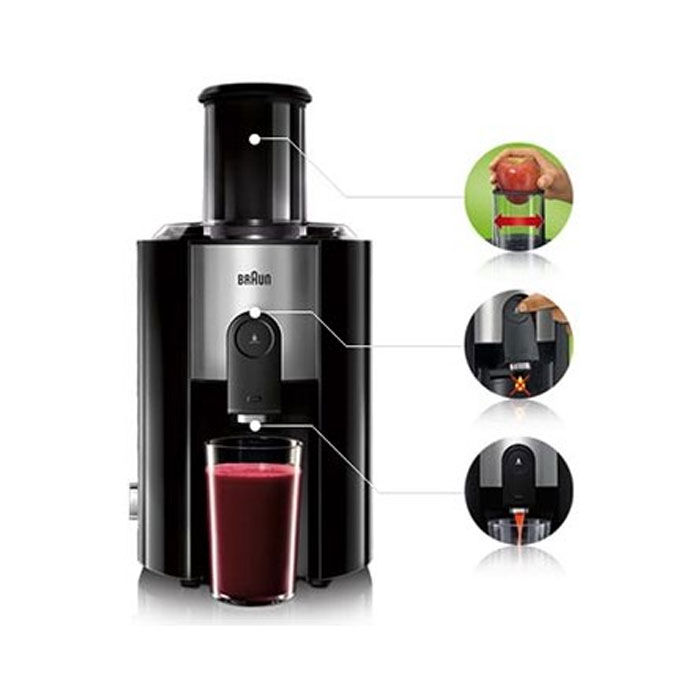Braun sokovnik J300 omogućava ceđenje bez prskanja i bojazni da ćete isflekati stvari. Sokovnik sa funkcijom brzog ceđenja za svega 15 sekundi je spremna čaša svežeg soka.