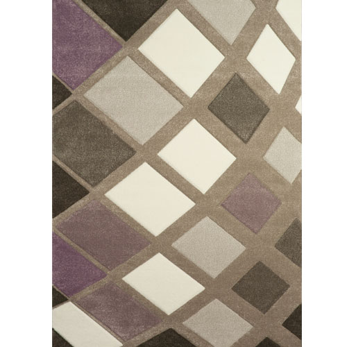 Tepih Ekol Diamond 21668-750 lila/ bež 140x200 cm. Reljefnog oblika dezena, izrađen od polipropilenskog vlakna izuzetne mekoće i velike gustine tkanja.
