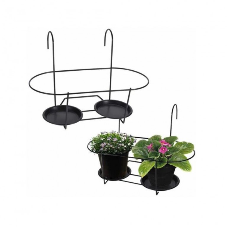 - Osnova može da primi dve saksije sa prečnikom dna od 10 cm. Držač se može okačiti na ogradu debljine do 5 cm.