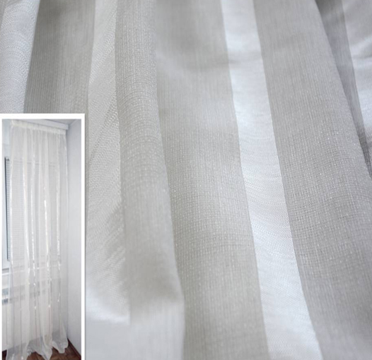 - Atraktivna bela zavesa sa uzdužnim linijama koje se blago presijavaju